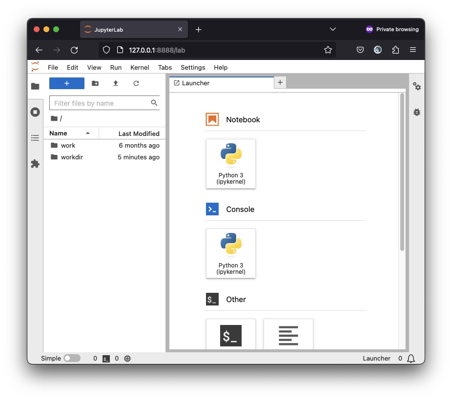 docker run --platform=linux/amd64 --rm -p 8888:8888 -v ${PWD}:/home/jovyan/workdir ghcr.io/nbisweden/workshop-scrnaseq:2024-scanpy_spatial-py3.10Do not close the terminal. At the end of the prompt, you will see a URL that starts with http://127.0.0.1, similar to the one below:
