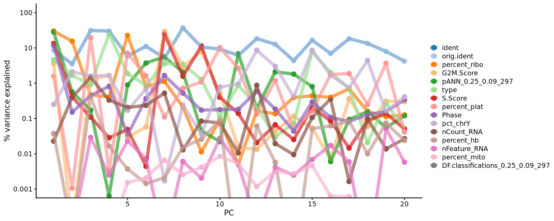 With the scater package we can check how different metadata variables contribute to each PCs. This can be important to look at to understand different biases you may have in your data.