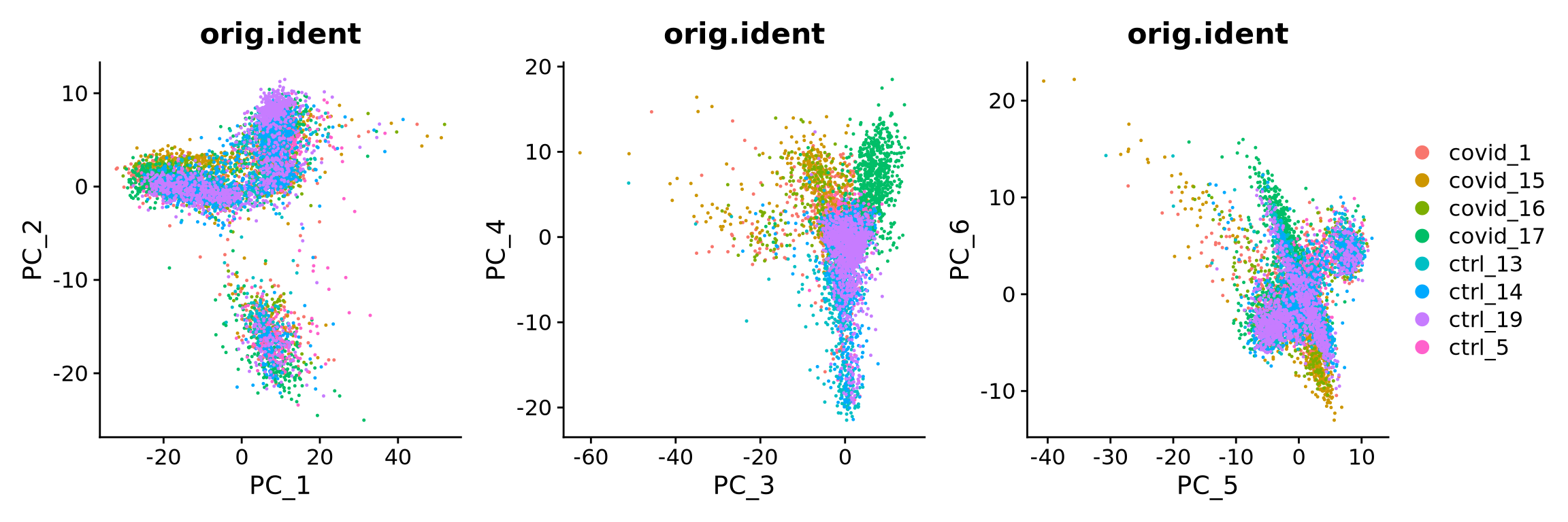 DimPlot(alldata, reduction = "pca", group.by = "orig.ident", dims = 5:6),