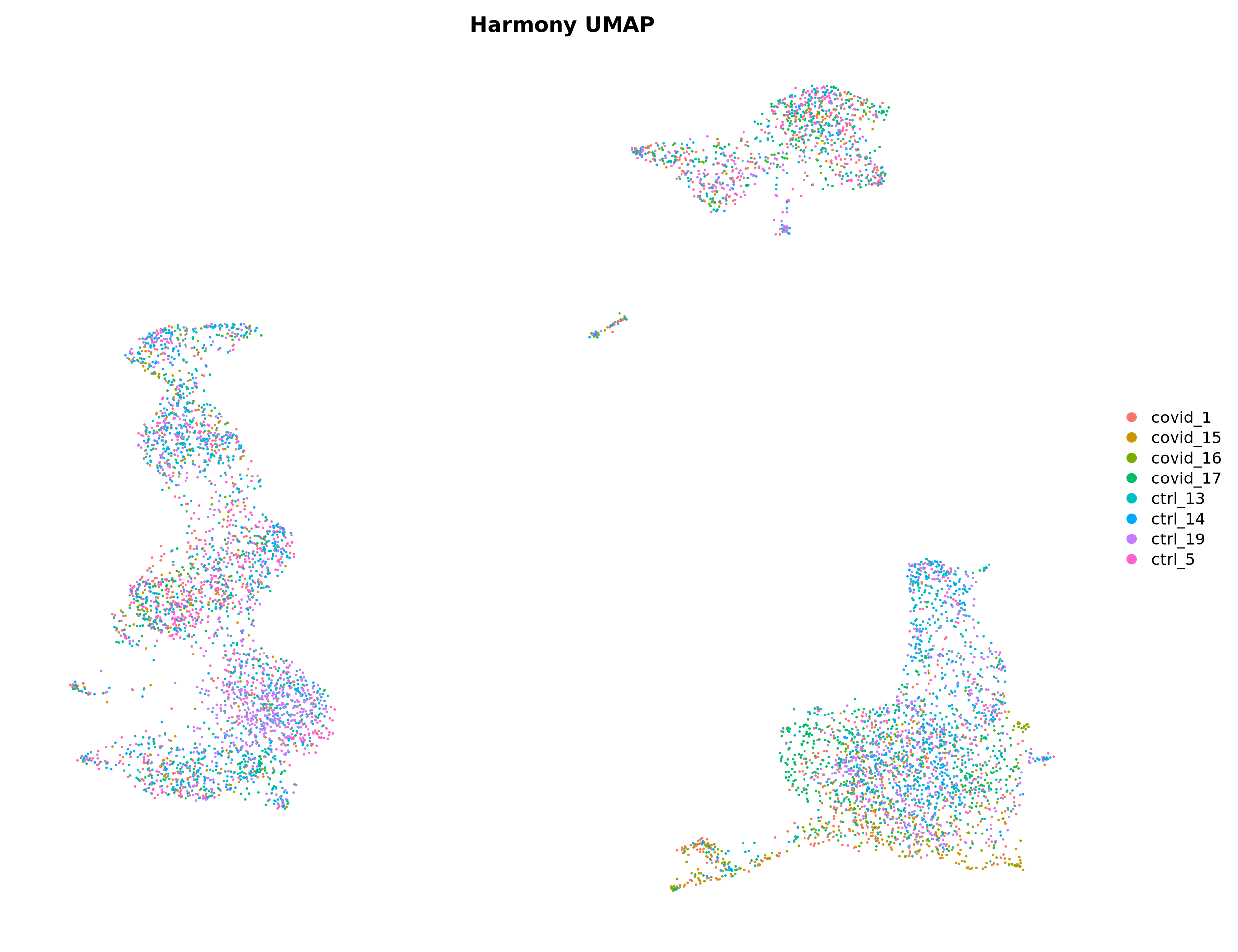 p3 <- DimPlot(alldata, reduction = "umap_harmony", group.by = "orig.ident") + ggtitle("UMAP Harmony")