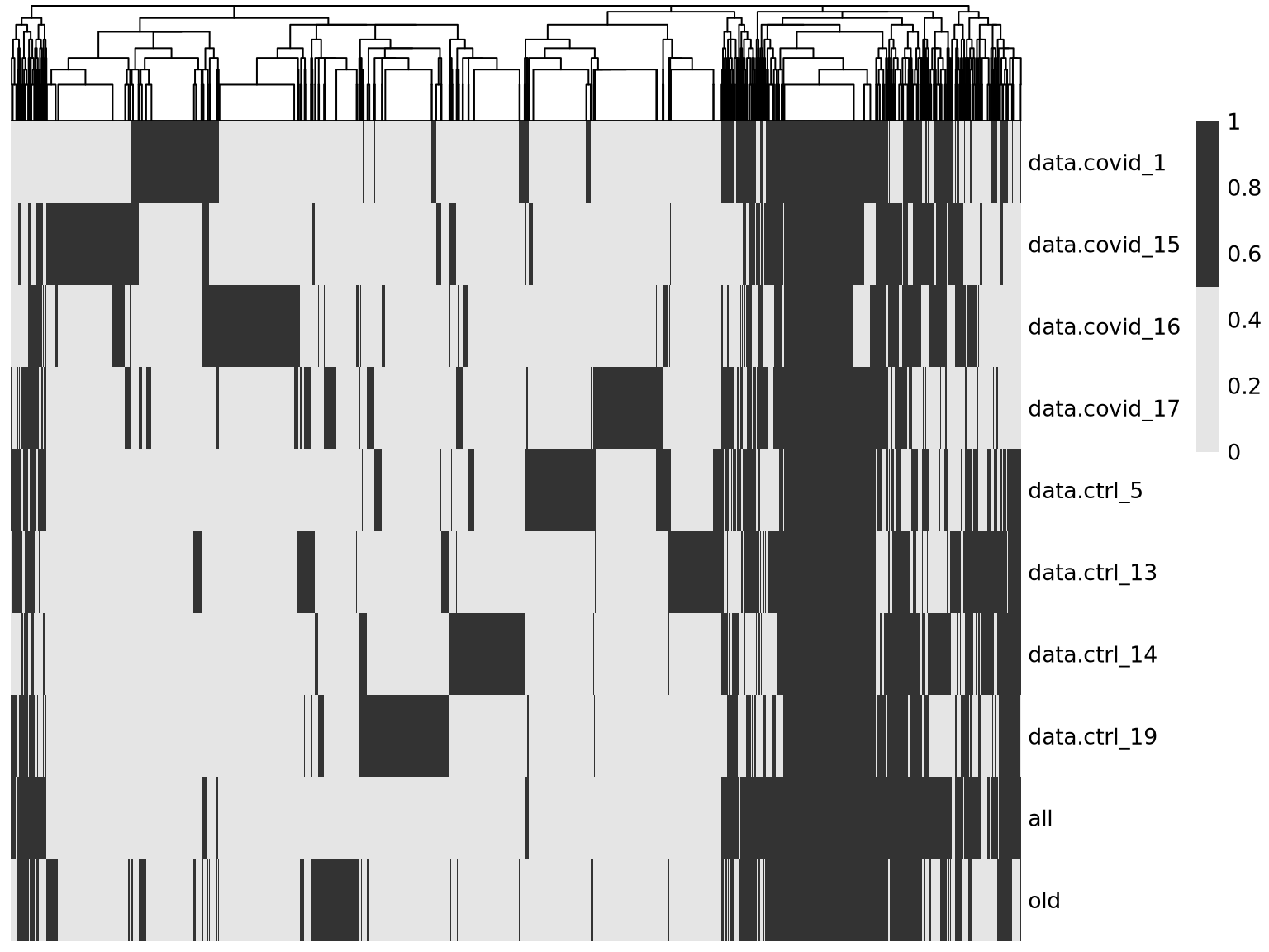 pheatmap::pheatmap(t(overlap*1),cluster_rows = F ,