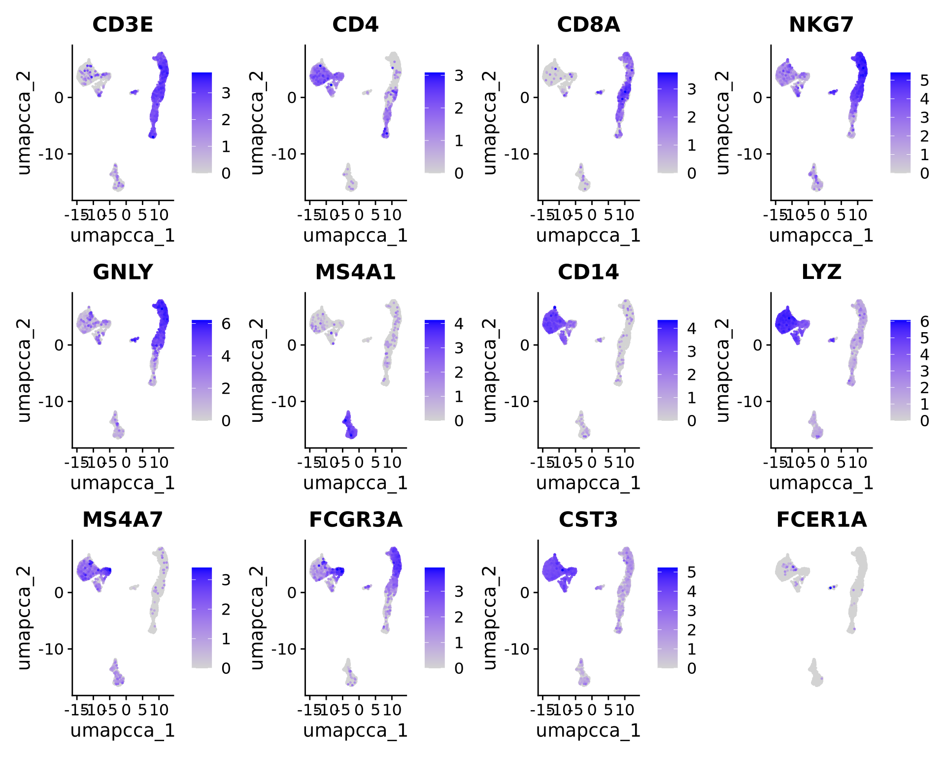 | FCGR3A, LYZ, CST3, MS4A7 | FCGR3A+ Monocytes |