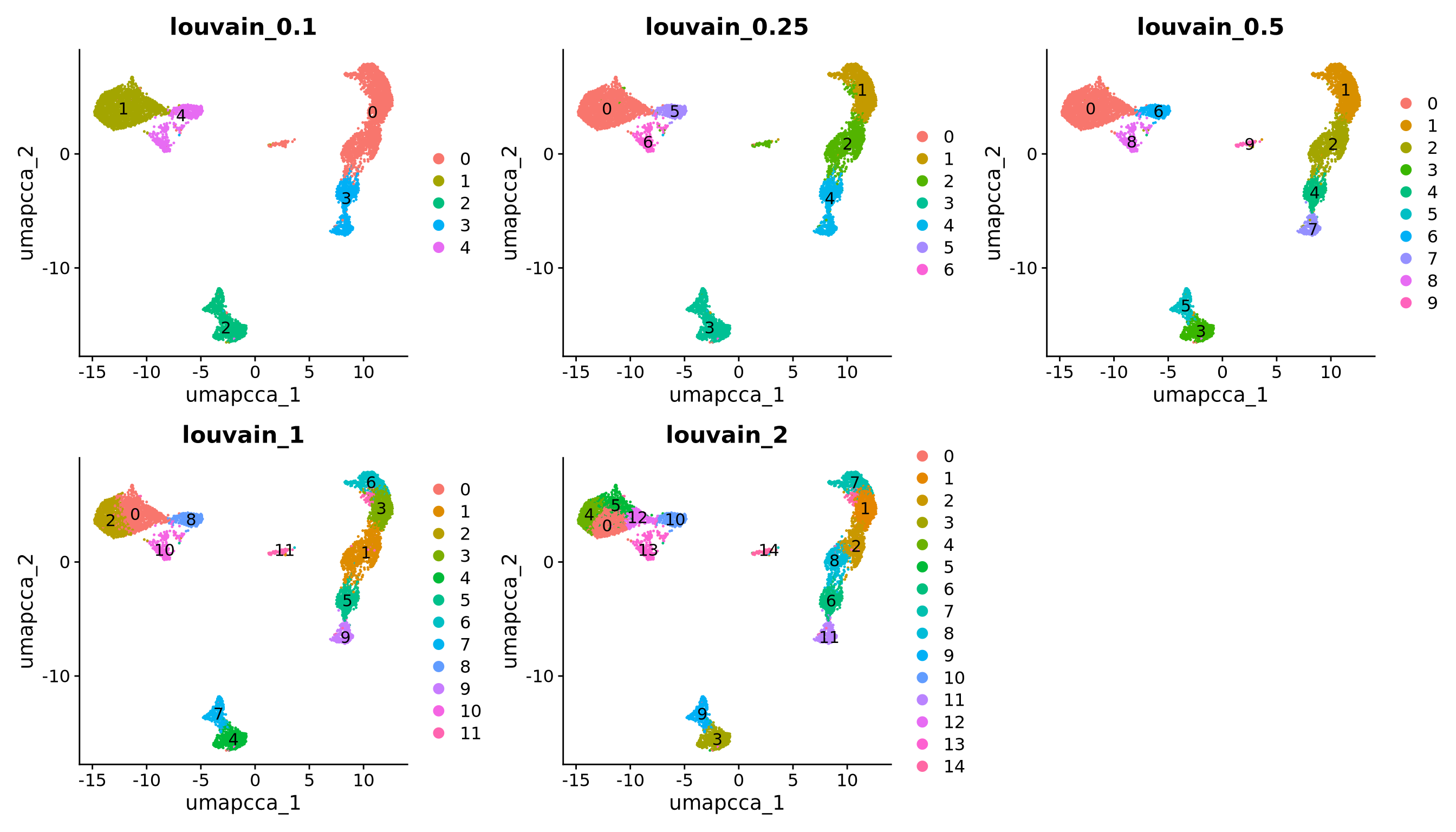 # RNA_snn_res.XX - for each different resolution you test.wrap_plots(