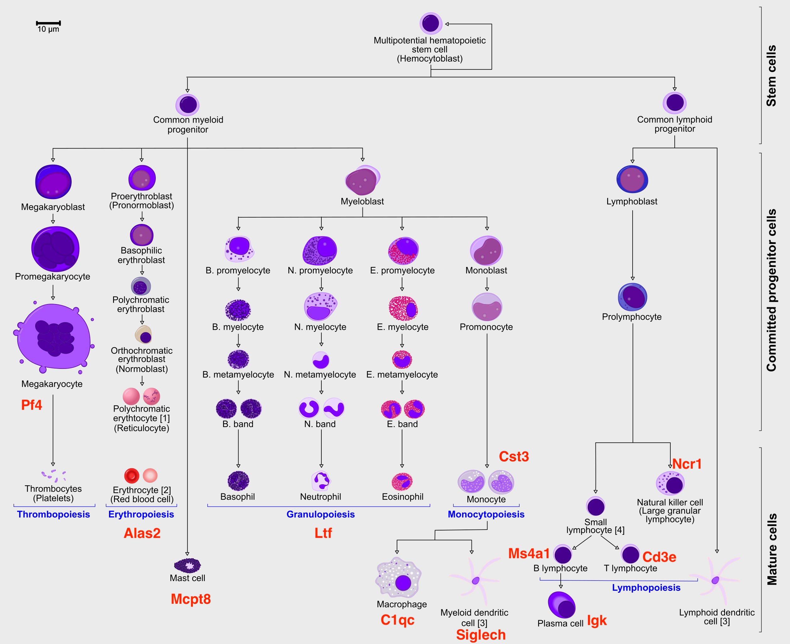 vars <- c("Cd34", "Ms4a1", "Cd3e", "Ltf", "Cst3", "Mcpt8", "Alas2", "Siglech", "C1qc", "Pf4")