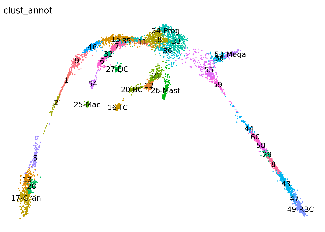 new_clust[new_clust == "53"] = "53-Mega" # Megakaryocytes