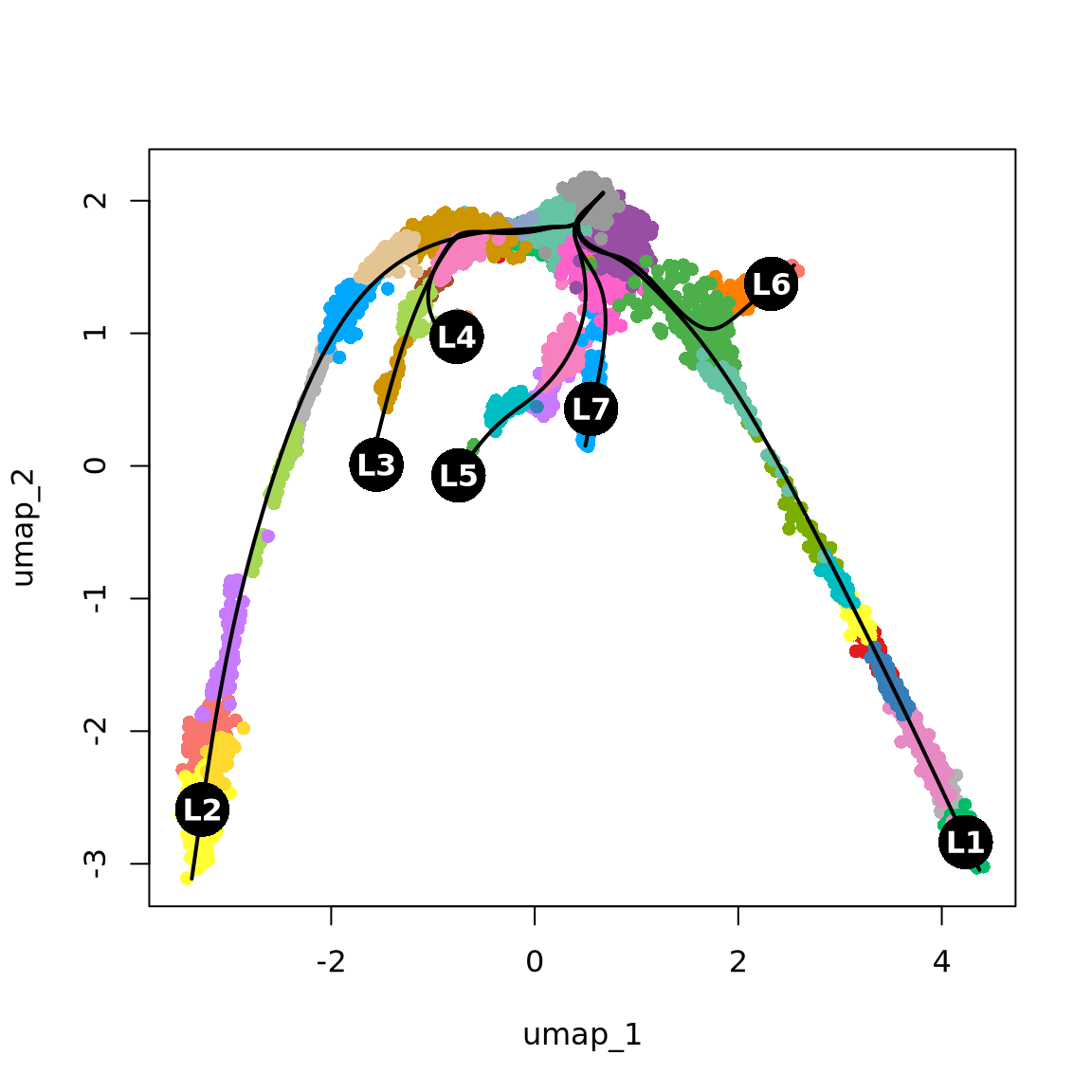 utils::browseURL("data/trajectory/umap_3d_clustering_plotly.html")We can now compute the lineages on these dataset.