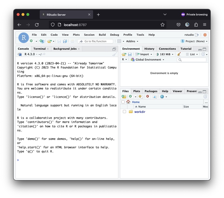Do not close the terminal. In the browser, go to localhost:8789. Use the following credentials to log in to the RStudio Server:
